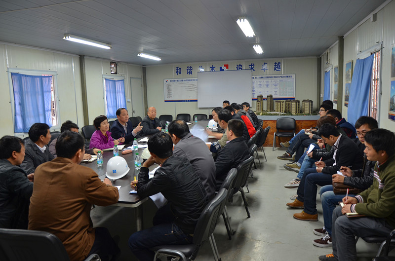 4月12日下午,华鼎装饰董事长、党委书记李新平,常务副总经理、总会计师唐玉芳到绿地1960项目检查指导工作,并在项目部会议室召开抓进度促进会,绿地1960项目部全体员工参加了会议,会议由项目经理吴宴军主持。