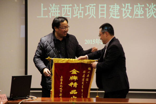 会中,肖董事长为做出杰出贡献的单位颁发了锦旗及感谢信。感谢信中对我司梅建恩、金刚、王世俊同志以及全体上海西站项目管理人员施工过程中不辞辛劳、攻坚克难、严格管理、精心组织施工的肯定,为华鼎公司对上海西站顺利开通运行提供有力保障表示衷心感谢,赞誉华鼎公司及上海西站项目管理团队为“金牌精品出精英”!